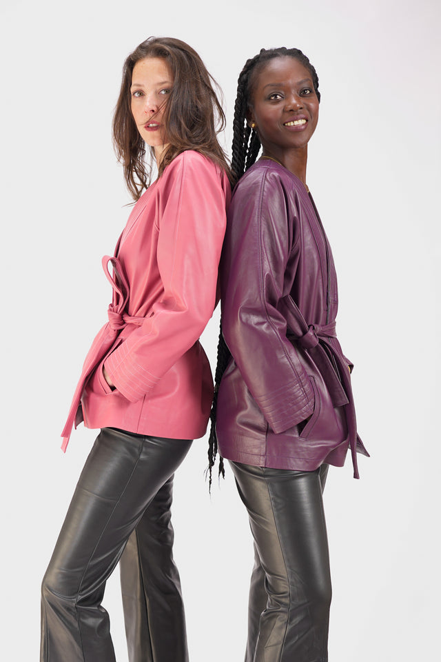 Available in a range of captivating colors, our leather kimono-inspired jackets empower you to express your individual style effortlessly. Explore a collection that celebrates heritage, art, and innovation. Unveil the story of centuries within the threads of your attire.